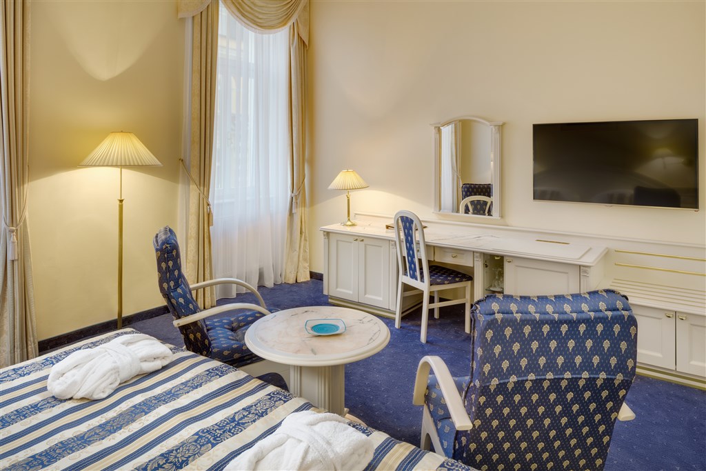 Komfortní pokoje jsou vybaveny: sprcha nebo vana s WC, LED TV, fén, klimatizace, topení, minibar, trezor, psací stůl, župan.