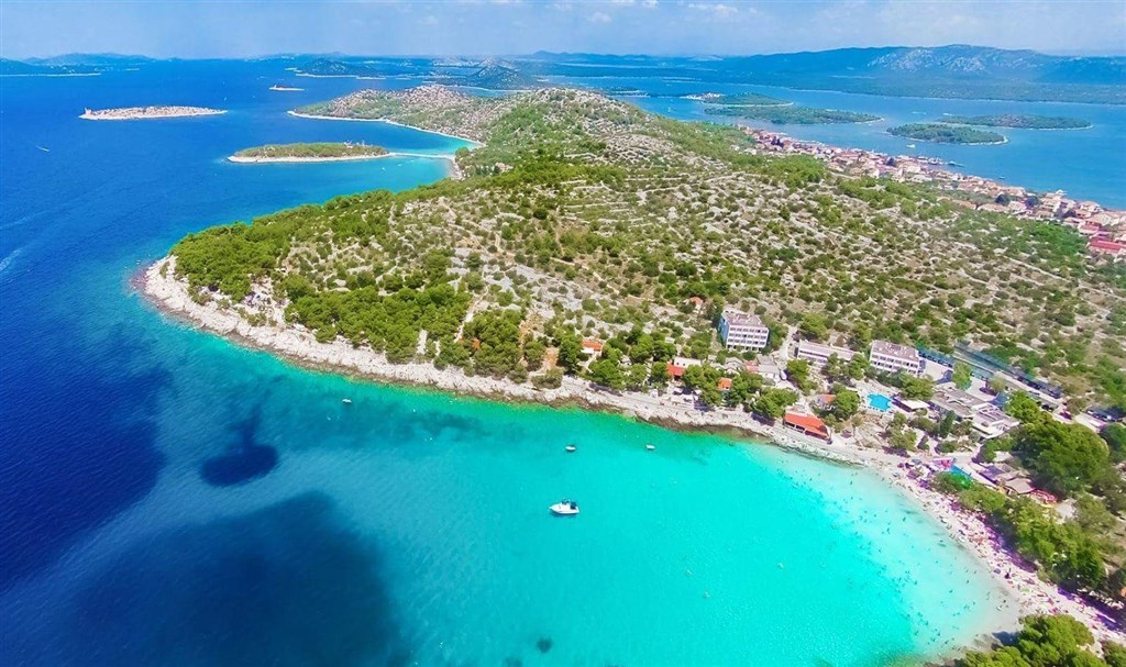 hotelový resort na krásném ostrově Murter spojený mostem s pevninou.