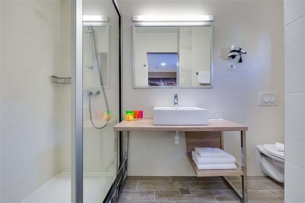 Moderní pokoje jsou dále vybaveny: sprcha nebo vana s WC, klimatizace, SAT TV, minibar, sejf, fen, Wi-Fi.
