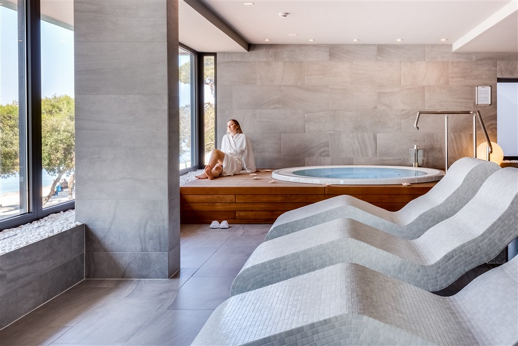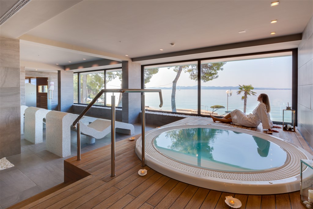 - vnitřní a venkovní bazén, bar na terase bazénu
