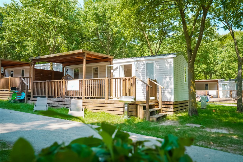 Mobilní domky jsou dále vybaveny: koupelna se sprchou a WC, SAT TV, klimatizace (za poplatek), plně vybavený kuchyňský kout (lednice s mrazákem , čtyřplotýnkový sporák a dřez, vybavení pro vaření a stolování), WiFi, částečně zakrytá terasa se zahradním nábytkem (stůl se židlemi , dvě lehátka nebo polohovací křesla)
