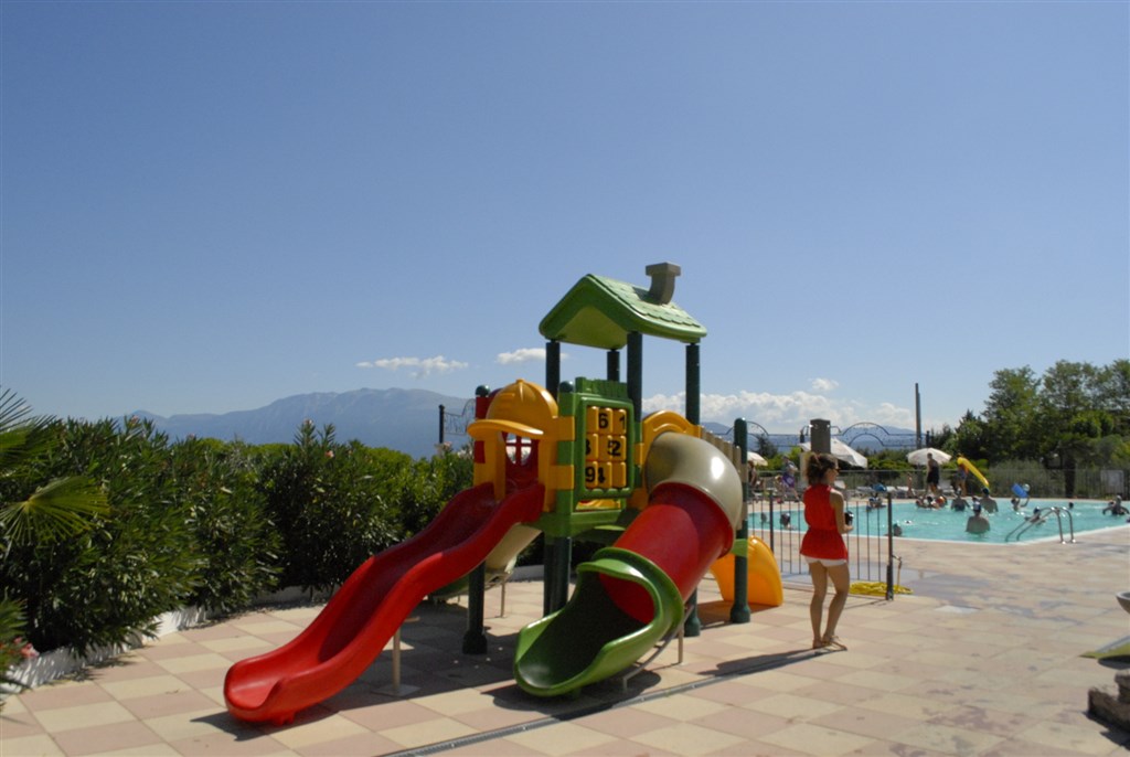 kemp svou polohou nabízí krásný pohled na jezero a horu Mount Baldo