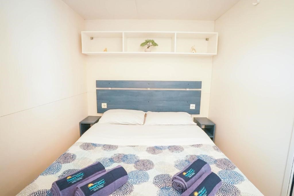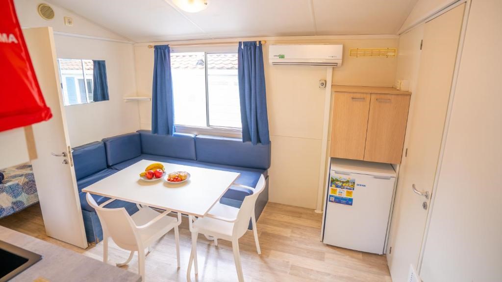 Mobilní domky jsou dále vybaveny: koupelna se sprchou a WC, SAT TV, klimatizace (za poplatek), plně vybavený kuchyňský kout (lednice s mrazákem , čtyřplotýnkový sporák a dřez, vybavení pro vaření a stolování, WiFi, zakrytá terasa se zahradním nábytkem (stůl dvě lehátka nebo polohovací křesla)