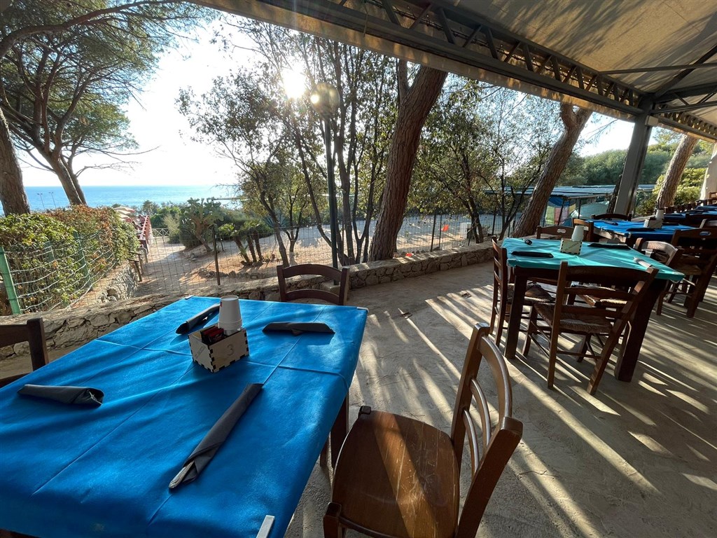 centrální recepce, parkoviště, restaurace s krytou terasou a výhledem na moře, bar, zmrzlinárna, úschovna zavazadel, prádelna, minimarket, WiFi v celém kempu