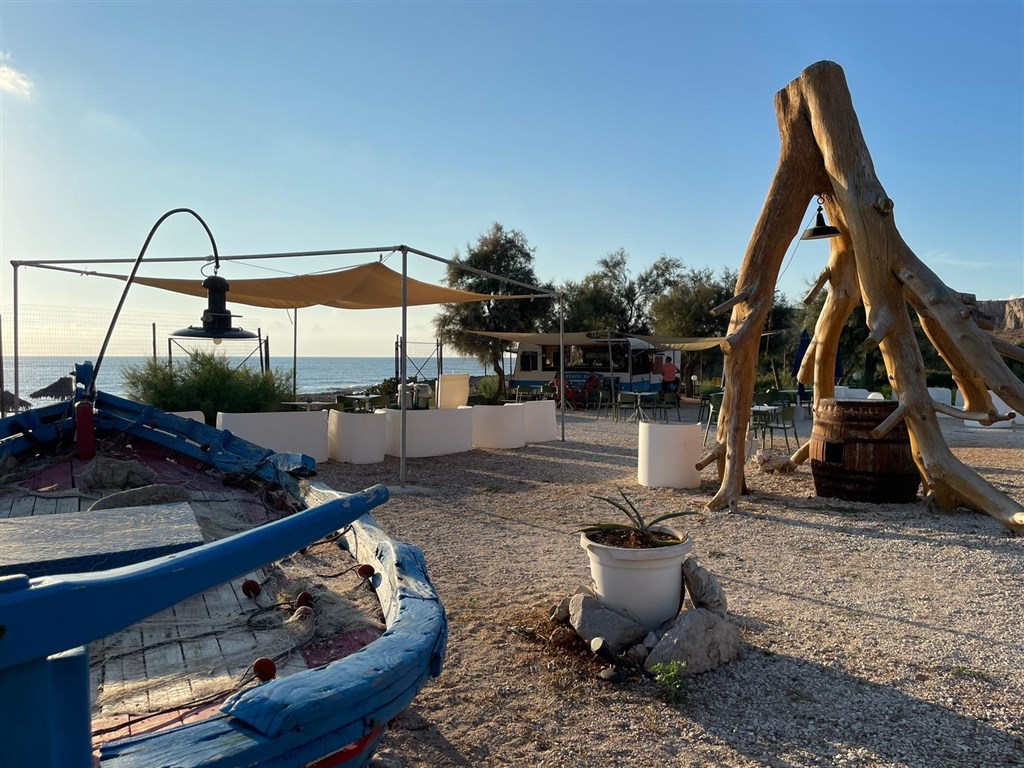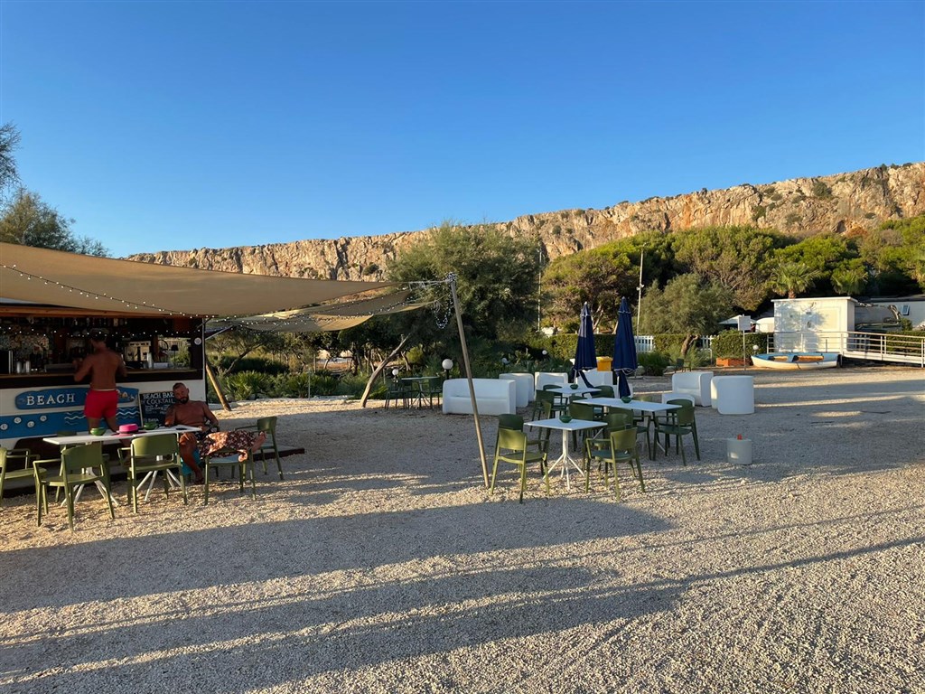 přímý přístup k útesům s lehátky a slunečníky (za poplatek), v blízkosti zátoka Bue Marino s bílými oblázky (1,5 km), pláž Baia Santa Margherita (4 km) a slavná pláž San Vito Lo Capo (5 km) s jemným bílým pískem