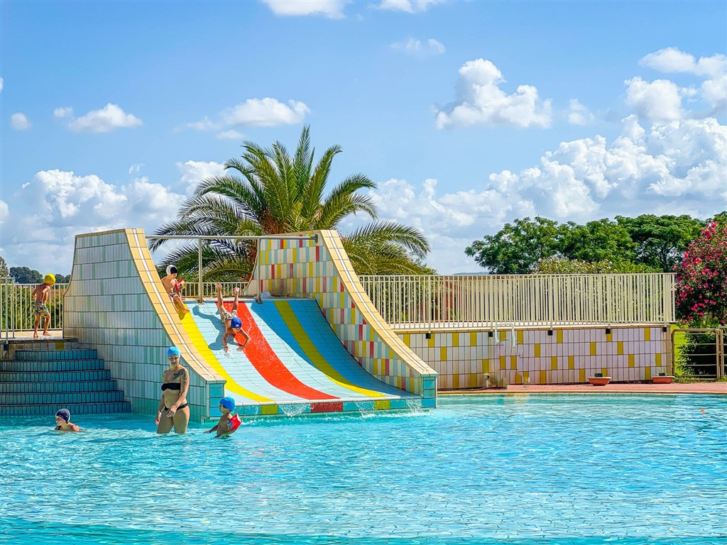 bazénový park s vodními atrakcemi pro dospělé a děti, hřiště pro malý fotbal, basketbal, tenisový kurt, venkovní fitness, vodní sporty, animační programy