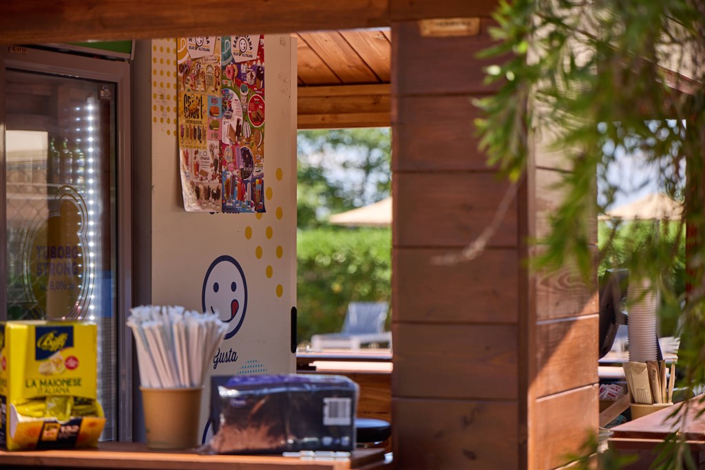 Mobilní domky jsou dále vybaveny: koupelna se sprchou a WC, SAT TV, klimatizace (za poplatek), plně vybavený kuchyňský kout (lednice s mrazákem , čtyřplotýnkový sporák a dřez, vybavení pro vaření a stolování), terasa se zahradním nábytkem (stůl se židlemi , dvě lehátka nebo polohovací křesla)