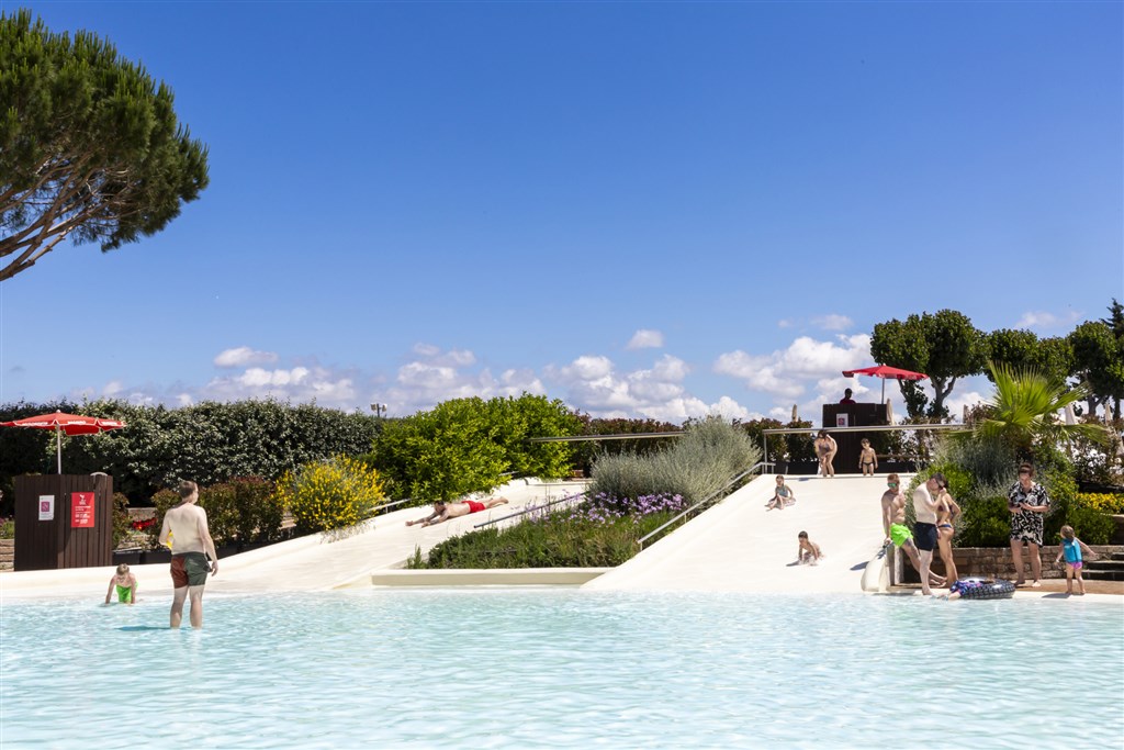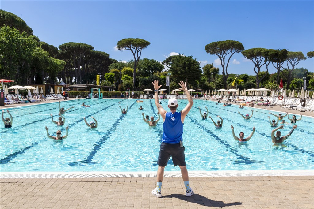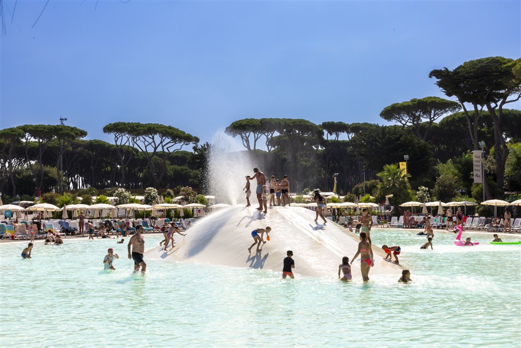 velký bazénový park s lagunami, ostrůvky, skluzavkami a vodními hrami pro děti, lehátka a slunečníky (v omezeném množství) zdarma, fotbalové hřiště, plážový volejbal, minigolf, půjčovna jízdních kol, lékař v hlavní sezóně