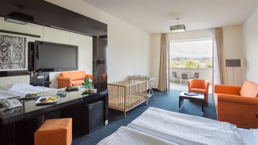 Family room 2(+2), cca 35 m2 - rodinný pokoj 2(+2) - ložnice a obývací pokoj s rozkládací pohovkou (přistýlka až pro 2 děti do 14 let).