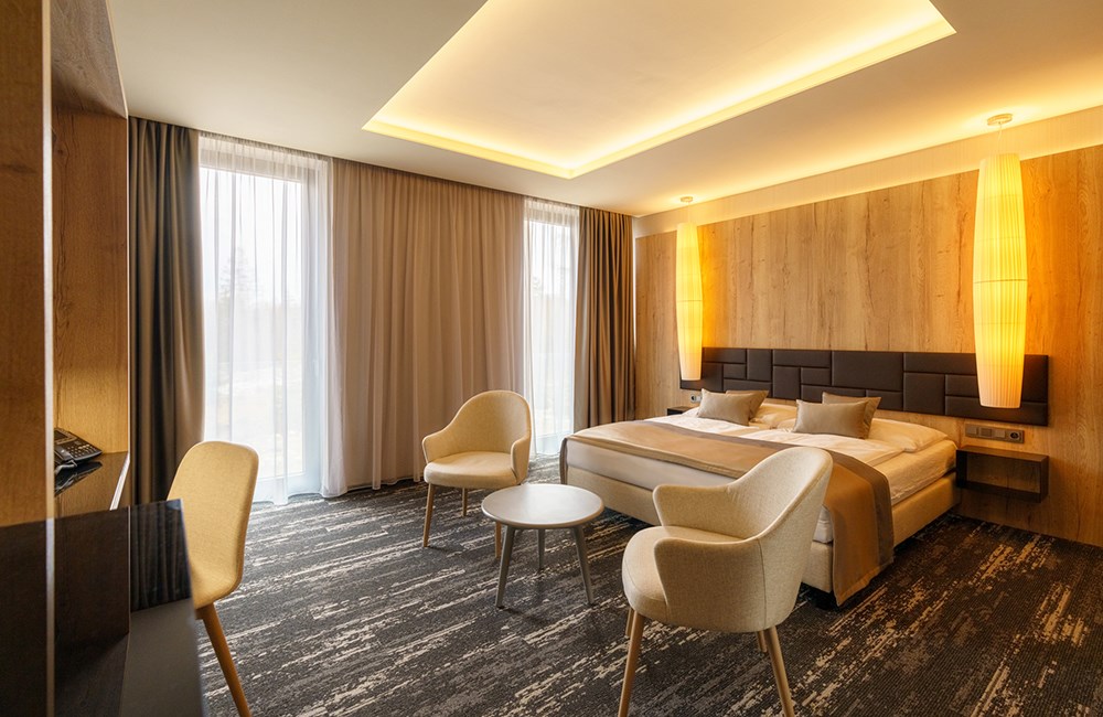 DBL 2(+2) Lux - 27-37 m2 - 2lůžkový pokoj s možností 2 přistýlek v obývací části pokoje, vhodné pro 1 dospělou osobu nebo dvě děti do 15 let