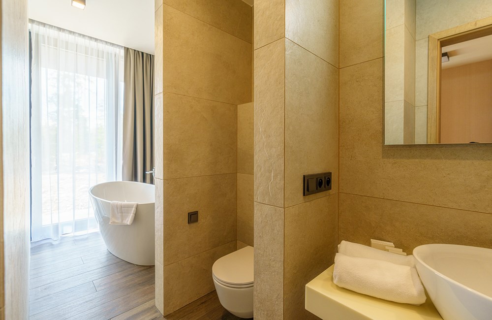 Luxusní pokoje jsou dále vybaveny: sprcha nebo vana a WC, SAT TV, sejf, fén, župan, set na přípravu kávy a čaje.