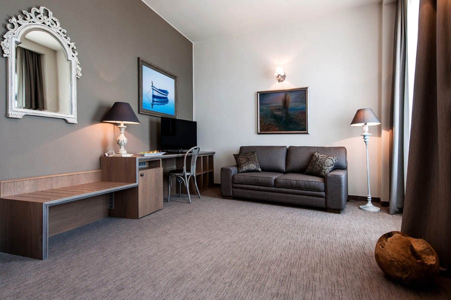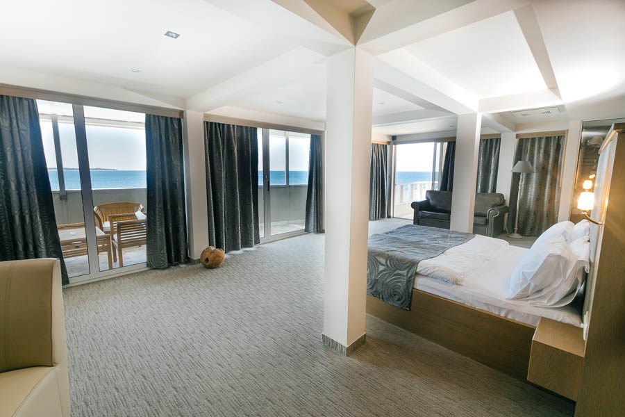 President Suite 2(+2), cca 35 - 45 m2 - ložnice a obývací místnost, balkon s výhledem na mořskou stranu.