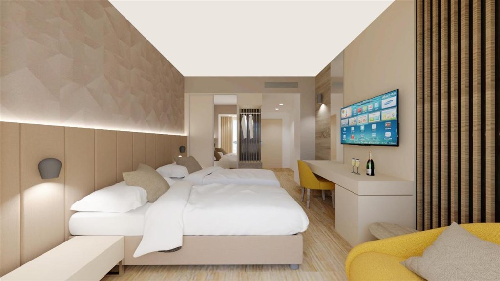 2+2 - F4SB, cca 20 - 23 m2 - rodinný pokoj s manželskou postelí a rozkládací pohovkou pro dvě děti do 13 let, balkon s orientací na mořskou stranu.