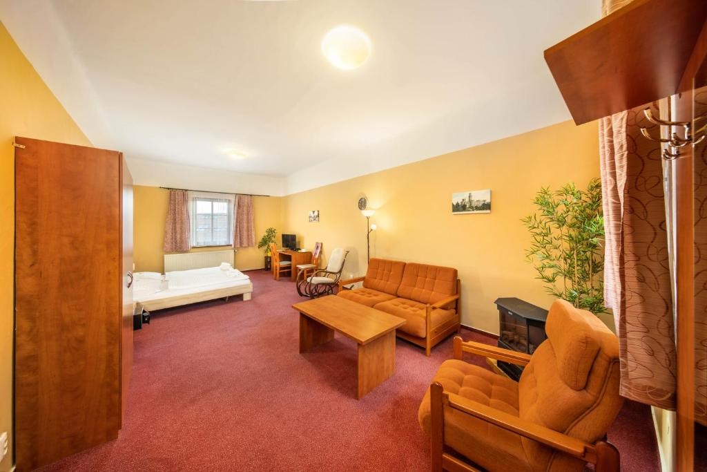 AP 2+1 - 2lůžkový apartmán s možností přistýlky - místnost větších rozměrů s manželskou postelí a rozkládací pohovkou.
